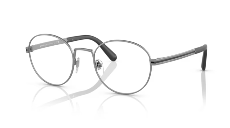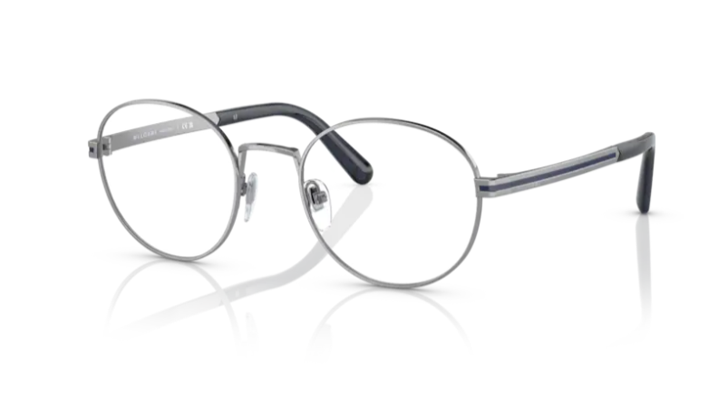 Round and refined describe this timeless Bulgari metal optical design with acetate temple tips. Metal temples with hand-crafted enamel decor to subtly evoke the hands of a Bulgari watch.