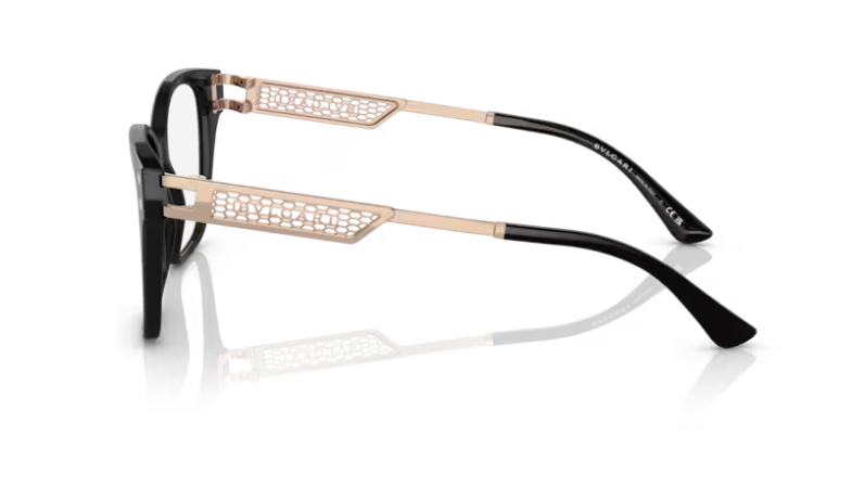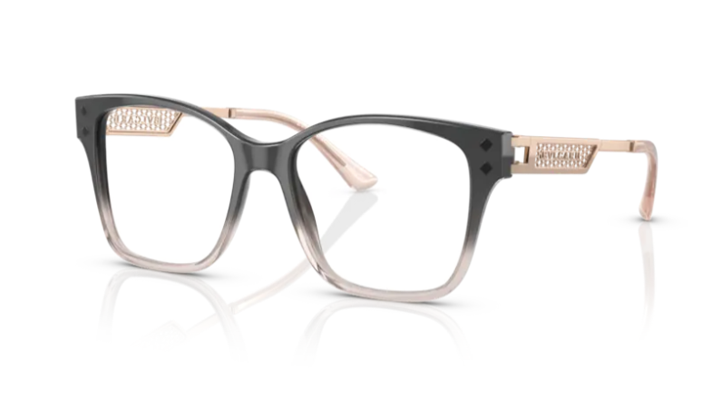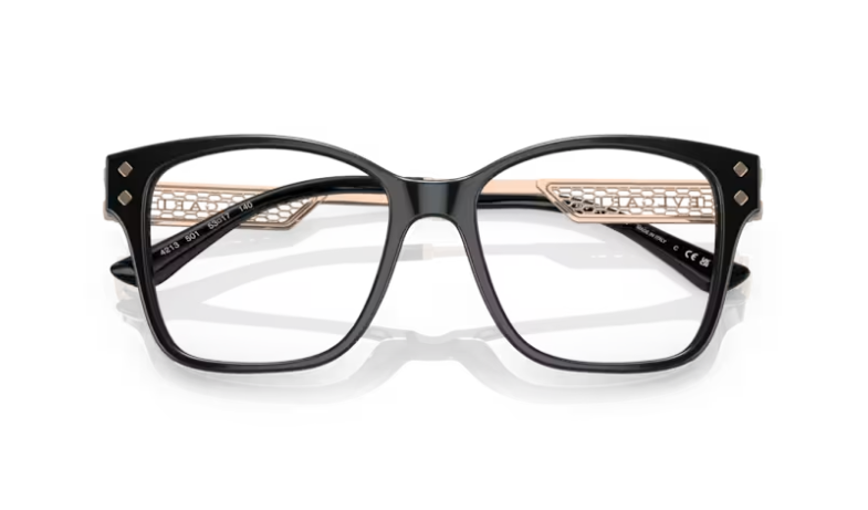 Acetate square front with extra optical glamor in the form of functional square metal details. Brand new narrow viper mesh temple design with acetate temple tips for added comfort.